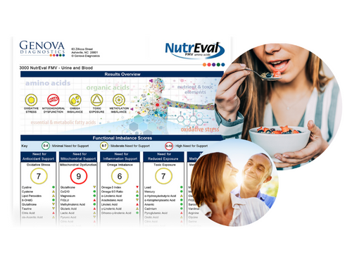 Genova diagnostics offers a diversity of excellent functional medicine testing. We often recommend the NutrEVAL plasma which evaluates over 125 markers to assess the body’s antioxidant, vitamin, mineral, fatty acid, amino acid, digestive status. Common clinical conditions we recommend this test for include food sensitivities, anxiety, weight gain, indigestion, fatigue, malnutrition.